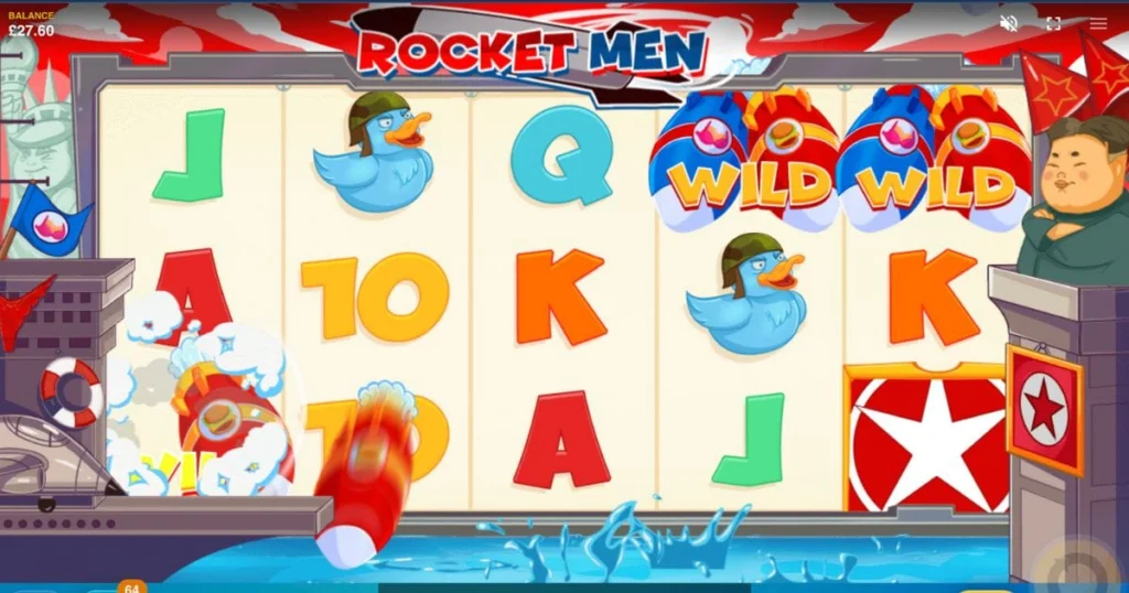 「ロケットマン(Rocket Men)」は、5リールと20ペイラインを持つオンラインカジノゲームです。そのゲームのテーマは、ロケットを使って空を飛ぶ2人の(どこかの政治家の面影のある?)キャラクターによる戦いが描かれています。彼らはそれぞれ異なる能力を持っており、プレイヤーに豊富なボーナスフィーチャーを提供してくれます。